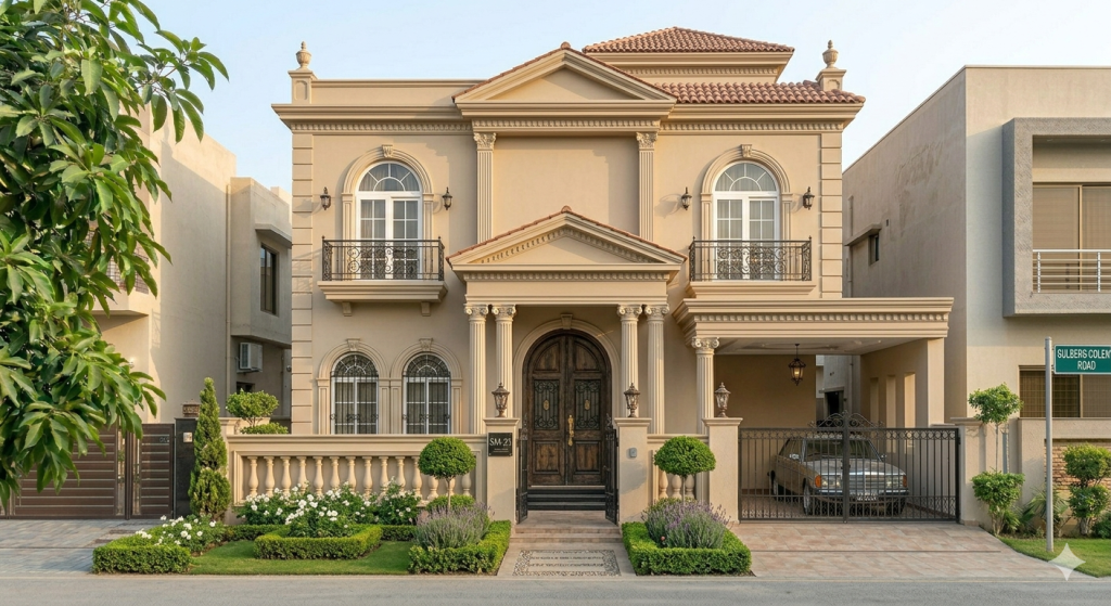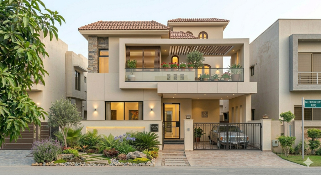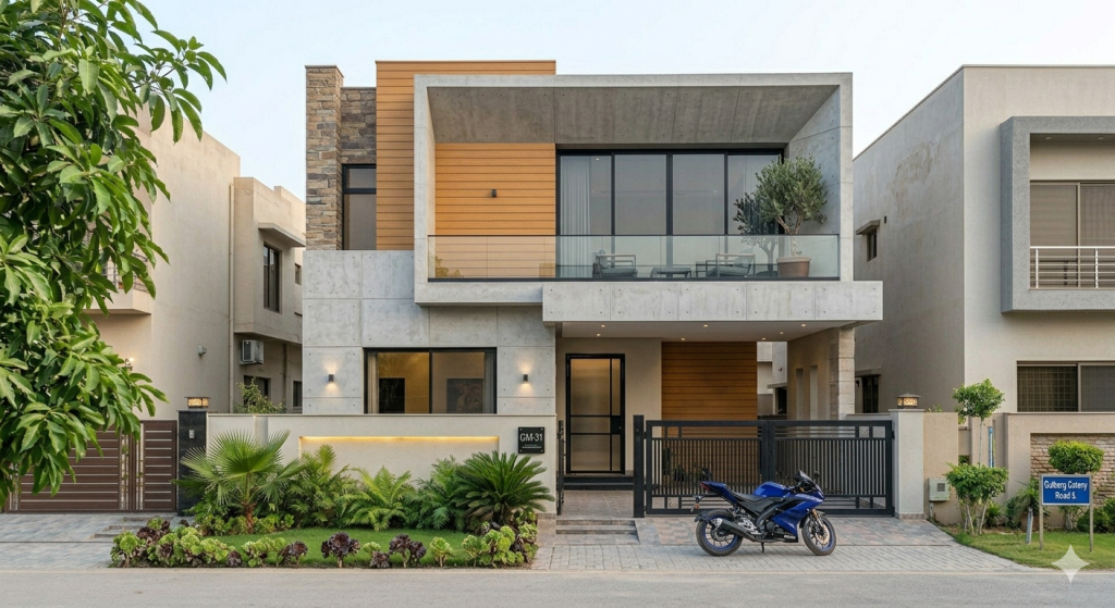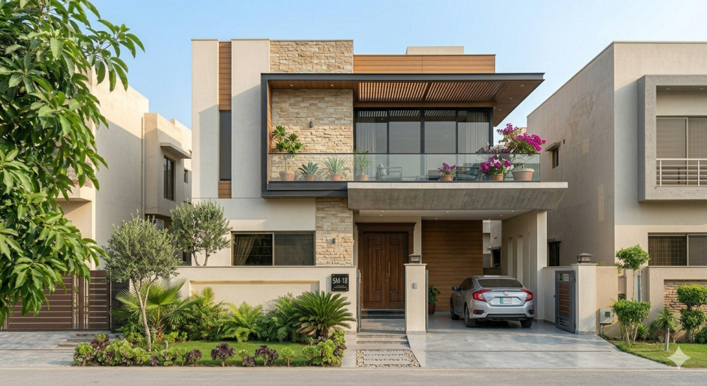 Mixing these materials creates a balanced and attractive elevation. The cost of 5 marla house construction in 2026 can be estimated according to material used.